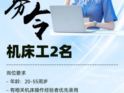东张孟工业园区诚招机床工2名,具体信息如下: