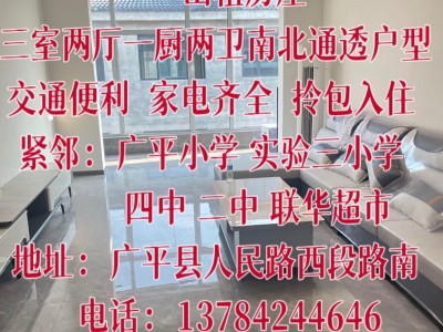 出租房屋三室两厅一厨两卫南北通透户型 交通便利家电齐全拎包入住 紧邻:广平小学实验三小学四中二中联华超市 地址:广平县人民路西段路南