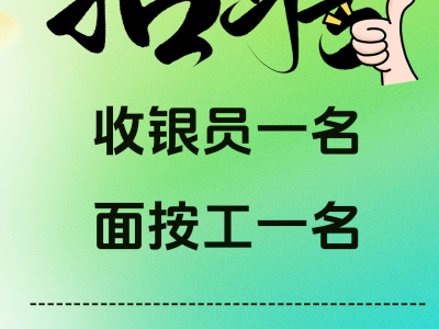 安居南门野尚膳招聘收银员一名,面按工一名。有工作经验者优先,工资,待遇进店面谈!!要求活泼开朗!性格温和