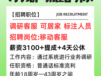 招聘岗位:调研客服,可居家,标注人员