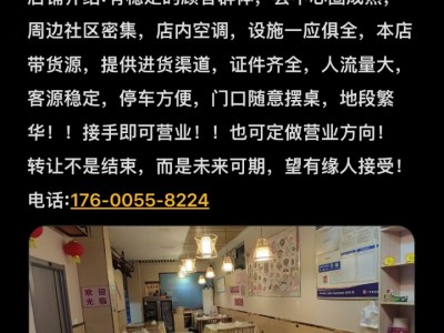 店铺转让 现有餐饮饭店转让!!! 店名:湘味小馆 面积:120平米 地址:广平东城南街老华夏医院南50m(湘味小馆) 店铺介绍:有稳定的顾客群体,县中心圈成熟,周边社区密集,店内空调,设施一应俱全,本店带货源,提供进货渠道,证件齐全,人流量大,客源稳定,停车方便,门口随意摆桌,地段繁华!!接手即可营业!!也可定做营业方向! 转让不是结束,而是未来可期,望有缘人接受!