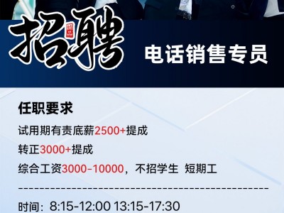 试用期有责底薪2500+提成 转正3000+提成 综合工资3000-10000,不招学生 短期工