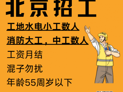 北京市招工地水电小工数人,消防大工,中工数人,工资月结(混子勿扰,年龄55周岁以下)有意请致电