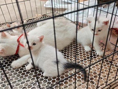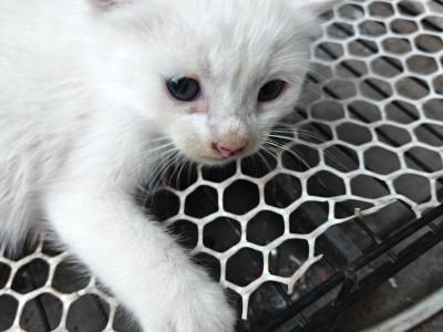 出家养的小猫,一个多月大,两只白的,都是小公猫,性格亲人会吃猫粮用猫砂,15一只。广平县菜市街自提