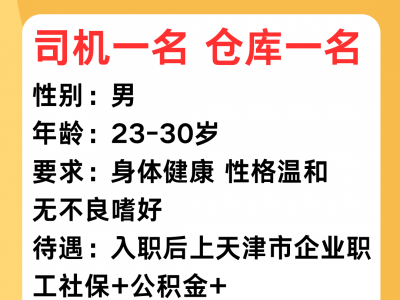 岗位:司机一名,仓库一名