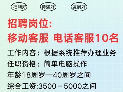 任职资格:简单电脑操作,年龄18周岁—40周岁之间