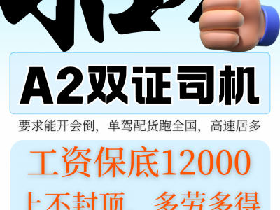 要求能开会倒,单驾配货跑全国,高速居多。工资保底12000,上不封顶,多劳多得,有跑全国配货车经验的优先,侧帘车不用盖篷布。