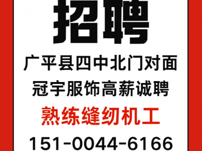 高薪诚聘熟练缝纫机工