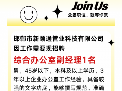 男,45岁以下,本科及以上学历,3年以上企业办公室工作经验,具备较强的文字功底,能够撰写规范、准确的公文、报告等。熟练使用办公软件具备信息化办公能力; 良好的服务意识,能够处理员工关系,营造积极向上的工作氛围。