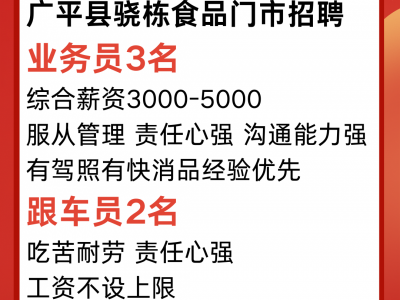 广平县骁栋食品门市招聘