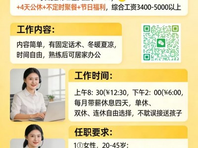 ️工作内容:内容简单 ,有固定话术、冬暖夏凉,时间自由,熟练后可居家办公
