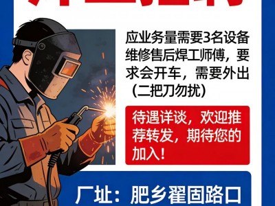 应业务量需要3名设备维修售后焊工师傅,要求会开车,需要外出(二把刀勿扰)