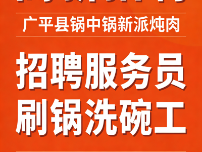 高新招聘 锅中锅新派炖肉广平店 招聘服务员 刷锅洗碗工 地址:广平县东城南街路东
