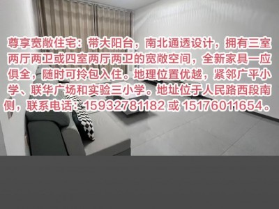 新房首次出租,南北通透户型,三室两厅一厨两卫,四室两厅一厨两卫,全新家电家具卫浴,拎包入住,交通便利,购物生活便利,紧邻:广平小学、实验三小学、第二幼儿园、广平四中、二中。地址:广平县人民路西段路南